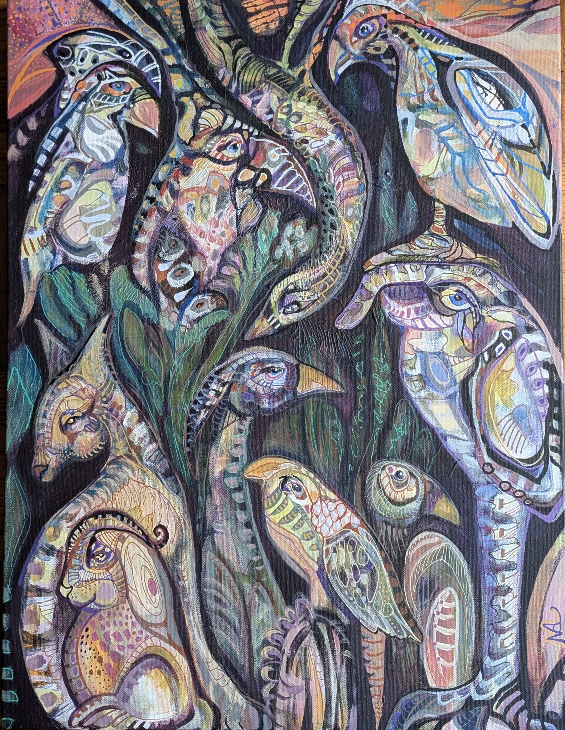 Huile, acrylique et pastel sur bois