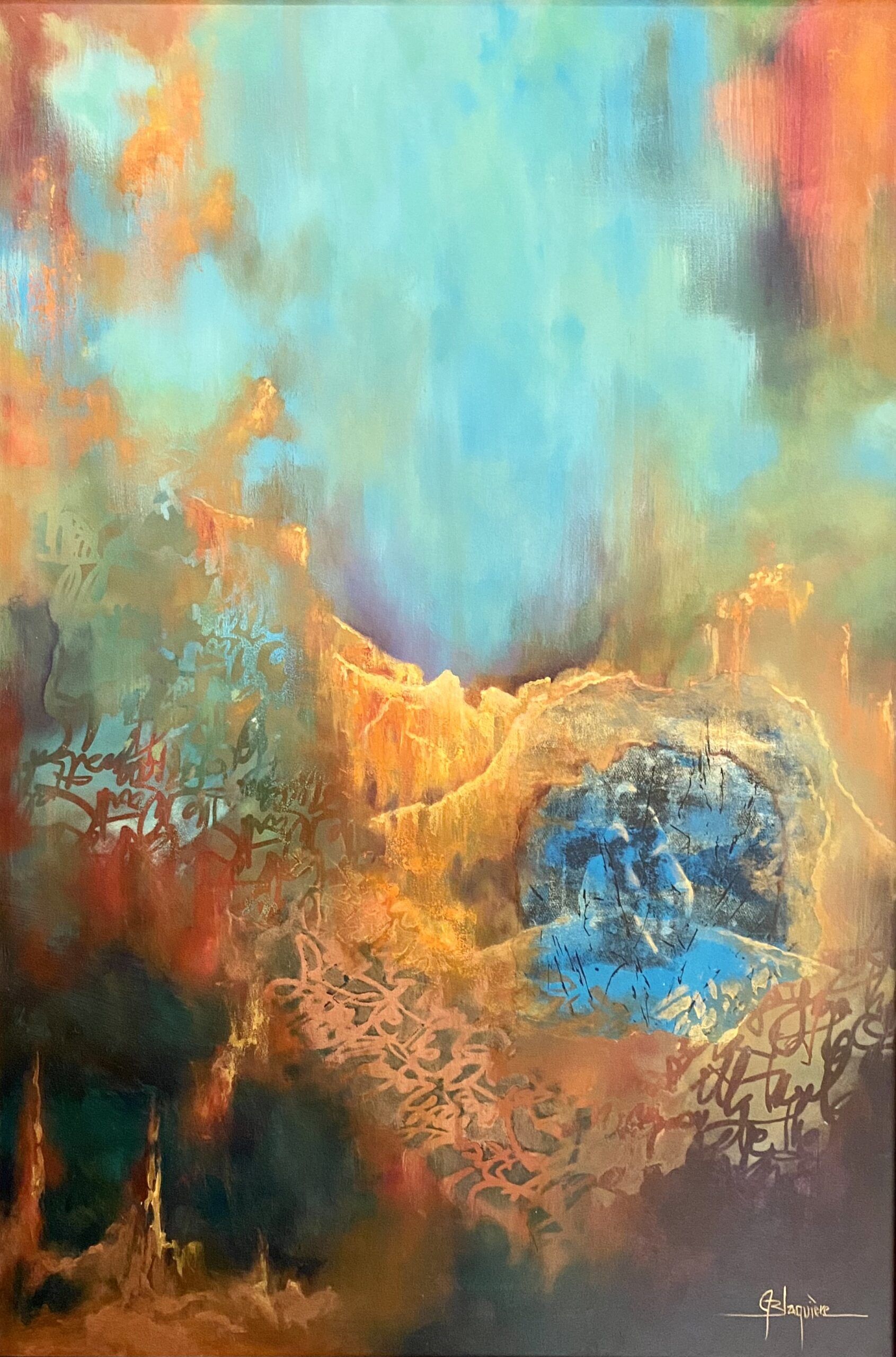 Parallèlement à ces activités professionnelles, il entame une démarche artistique de création picturale principalement inspirée par l’abstraction lyrique. Au cours des années, il a progressivement accordé plus de temps à son travail créatif, pour finalement entièrement s’y consacrer. Pour lui, l’art abstrait exprime une quête, une recherche de quelque chose qui par ailleurs est indéfinissable, qui va au-delà des mots. Sa pratique est foncièrement intuitive, imprégnée de l’ambiance de notre époque chaotique, par conséquent marquée par des incompréhensions, des contrariétés ; des aspirations, des espoirs, autant que des doutes sur leur réalisme devant l’avenir qui nous attend. Claude Lafrance cherche dans l’acte de peindre un état d’esprit, un état de la conscience où parfois son intervention semble échapper à tout contrôle, sans règles et sans hésitations, parfois exige une réflexion patiente empreinte d’hésitations. L’artiste est dans un processus intense d’autocritique, dans un combat intérieur qui se confond avec la recherche de réponses aux énigmes que posent la concrétisation du tableau. C’est ainsi que l’œuvre non encore accomplie exige de lui ce qui l’accomplira et la fera pleinement exister hors de lui, à ses propres yeux. Ses œuvres proposent une conversation autant qu’elles peuvent témoigner de moments introspectifs et solitaires. Le travail de l’artiste est représenté par la Galerie L’Harmattan à Baie-Saint-Paul.