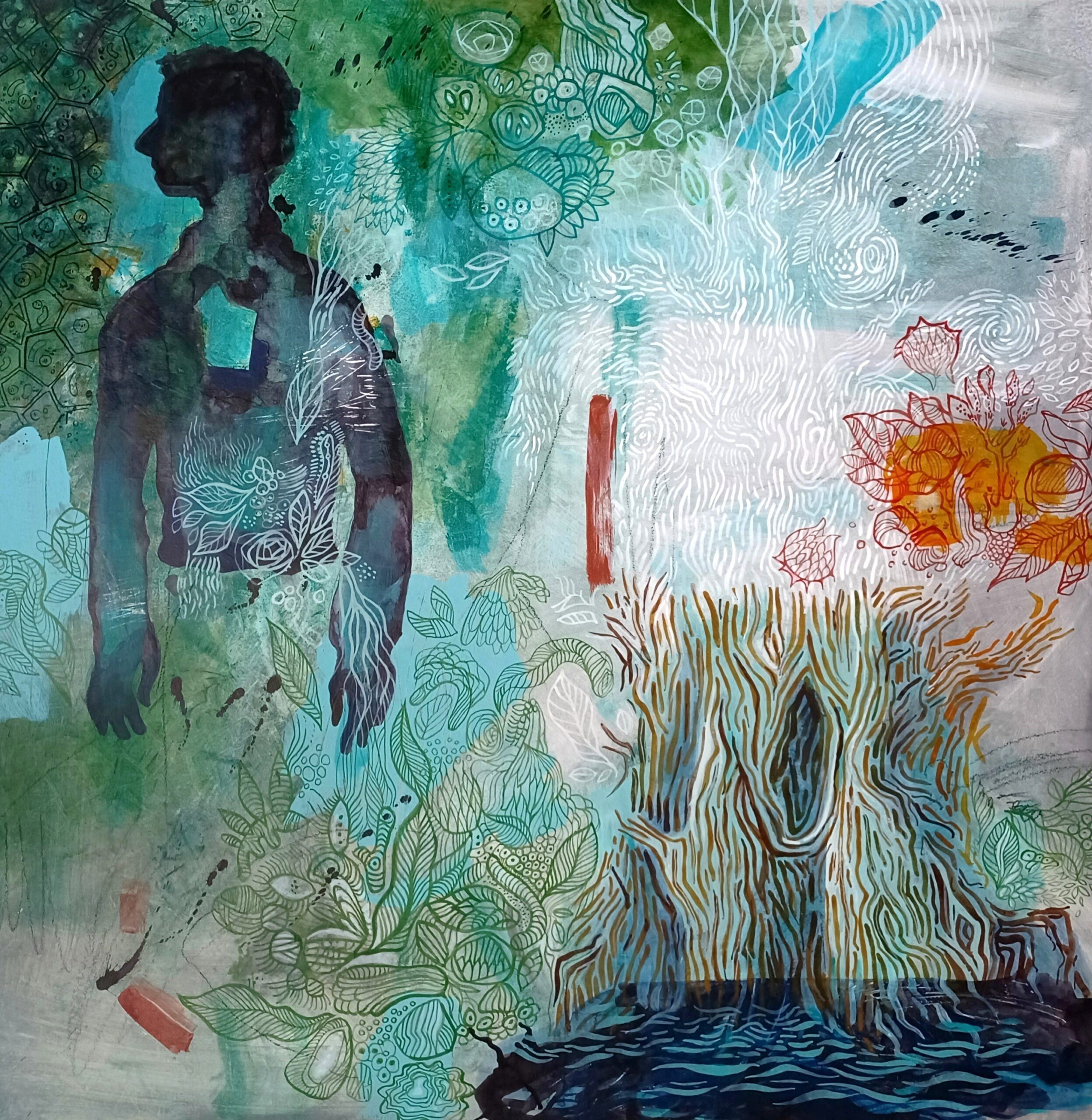 Acrylique, crayon Stabilo et crayon China