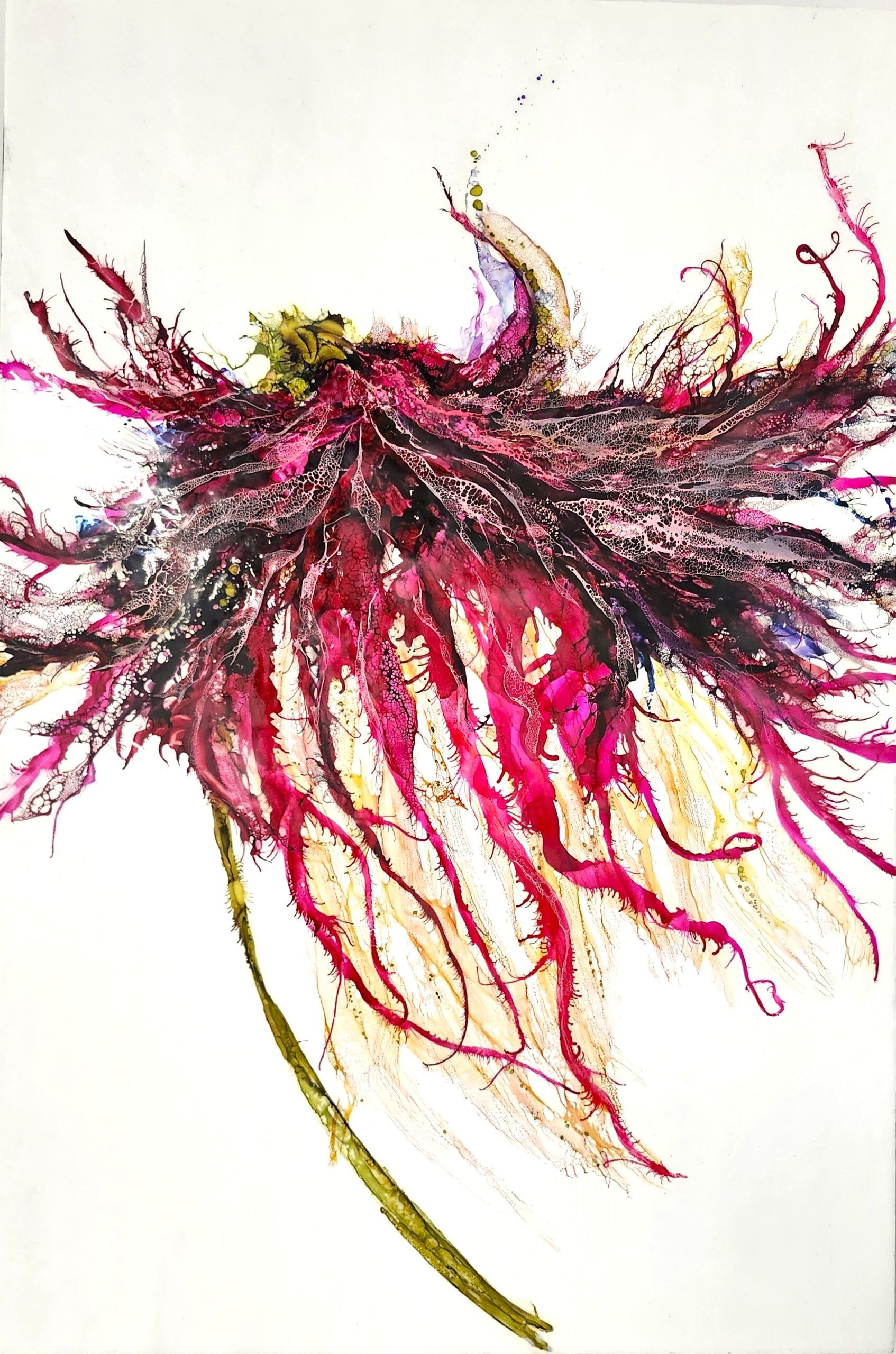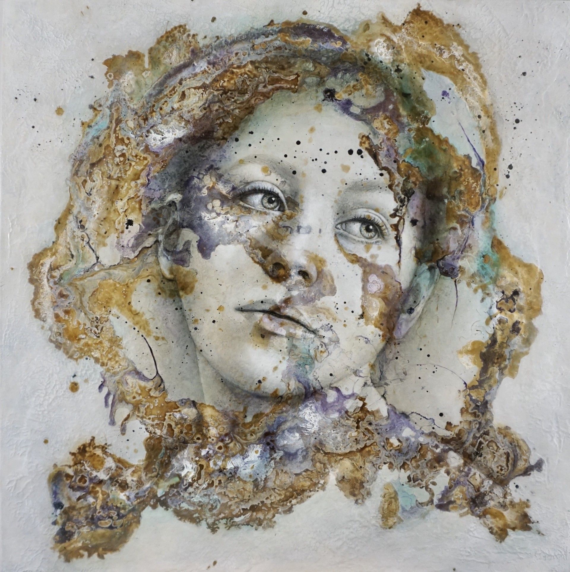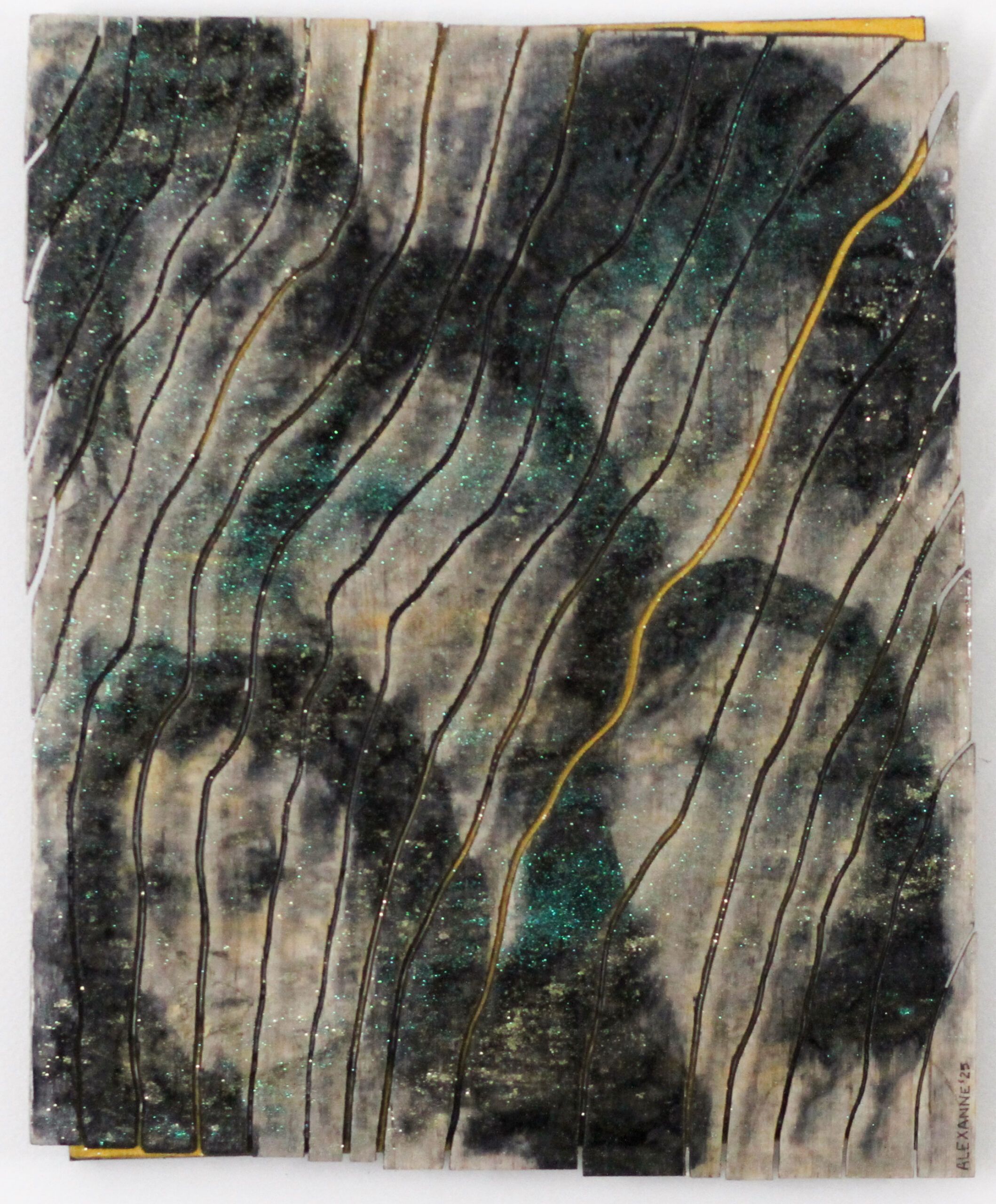 Peinture encaustique, encre à l’alcool et shellac