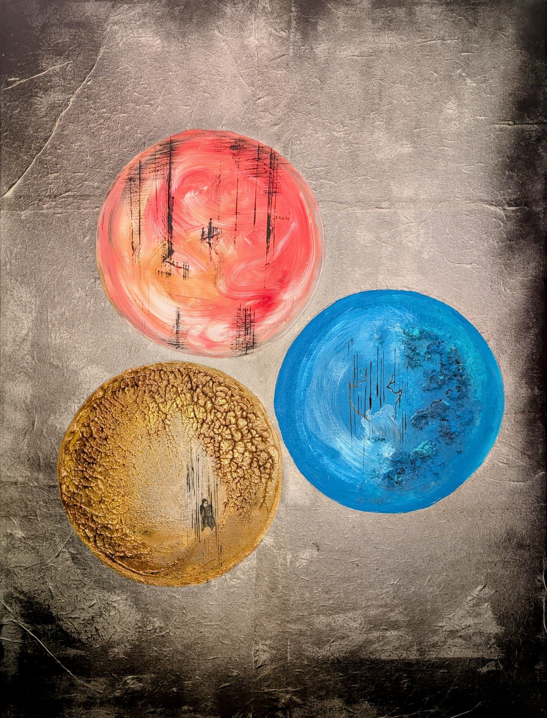 Acrylique et particules d’or pur 24k sur bois